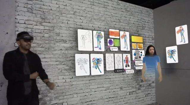 HoloLens头显用户以全息化身形象出现在协作式环境,而他们都可以实时访问微软应用程序的数据。由于HoloLens的手部追踪有了大幅提升,用户能够轻松拾取虚拟文档并将其交给另一位用户。他们甚至可以用双手调整虚拟对象的位置和尺寸。另外,他们都可以看到与设计相关的注释。