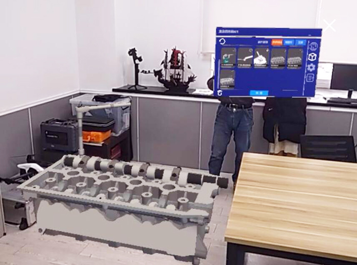 2台HoloLens端也同步显示出了模型动画,通过iPad默认以第三方视角查看HoloLens端中对模型移动、旋转和缩放。