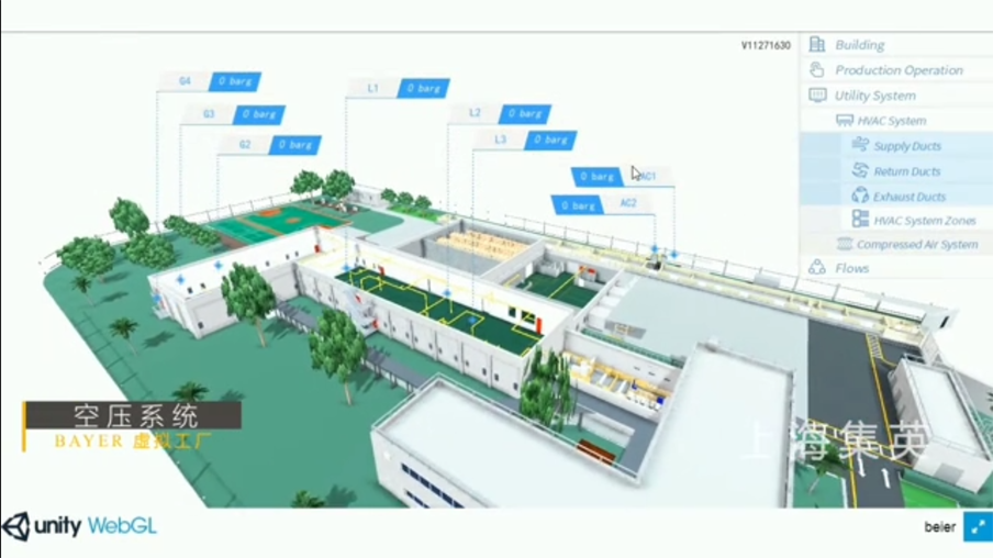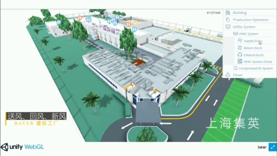项目介绍:Bayer3D可视化数字工厂利用数字孪生技术,让用户可以在模型上看到自己工厂的实时数据变化,及时发现问题,解决问题达到监控和管理的作用。