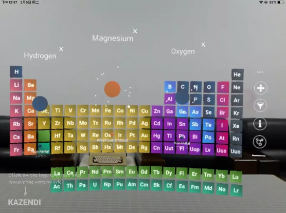 而现在,"MyLab"程序打造一个可视化元素周期表,填补教科书和实验之间的空白。学生们不仅可以直观地看到3D的元素周期表的规律与排列,基于手势交互,还可以和单元素互动,观察多元素结合反应后的效果。