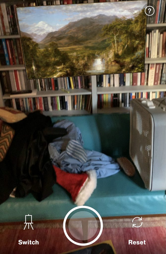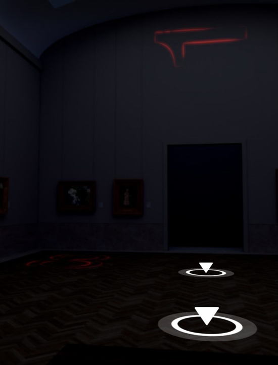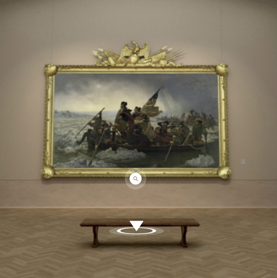 通过模型软件搭建渲染出虚拟画廊,在画廊中单击各种艺术作品、音频材料、以及一系列可以解锁的迷你游戏。这一系列操作会激活“Unframed”体验的第三层——“借用”艺术品,可以拥有15分钟的专有权,通过AR技术把艺术品图像放置到自己现实生活的场景中。